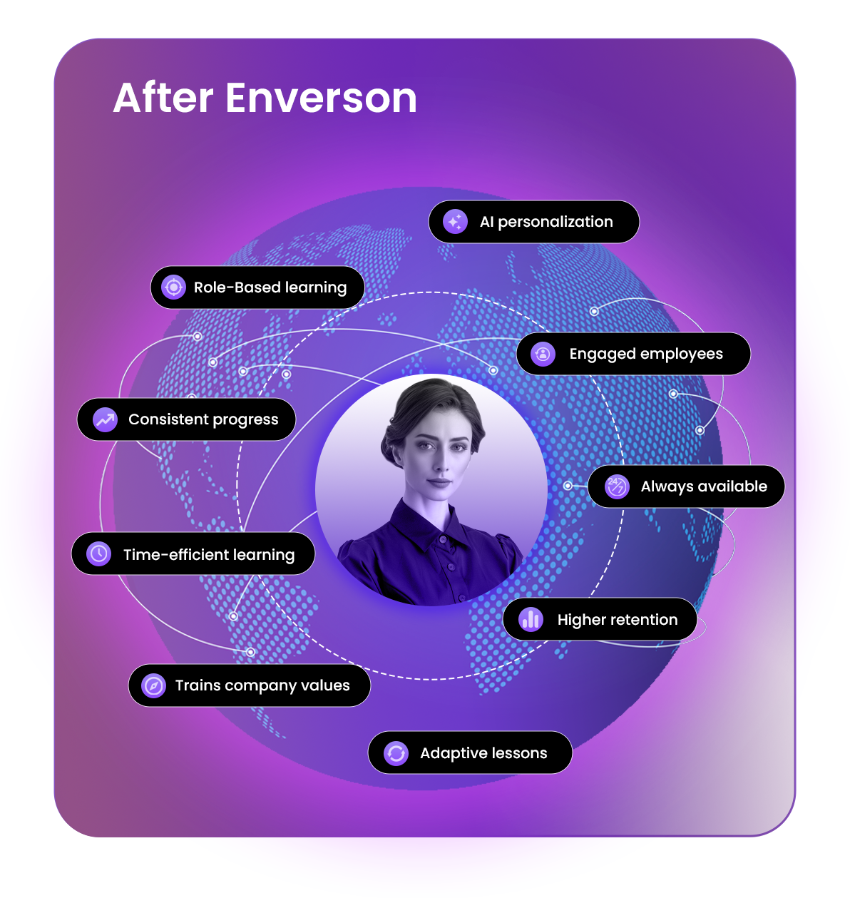 A system where AI agents simulate real conversations, track progress, and adapt training to each employee’s role and needs.